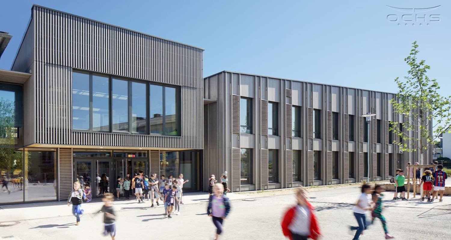 Neubau eines Ganztagsbereiches und einer Mensa in Holzrahmenbauweise.