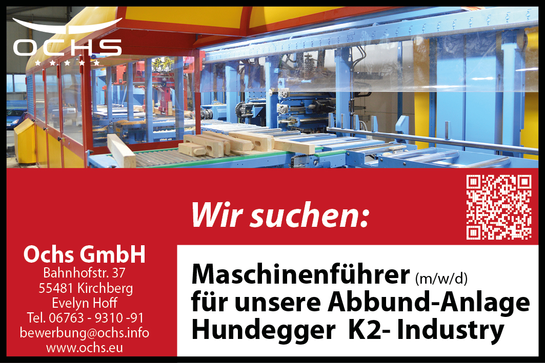Die Ochs GmbH ist ein innovatives Unternehmen in den Bereichen Zimmerer- und Ingenieurholzbau, schlüsselfertiges Bauen, Mehrgeschossbau, Gewerbebau, Modulbau, Dachaufstockungen, Holzhausbau und Sonderbau. Das Thema Nachhaltigkeit, in all seinen Facetten, bestimmt unsere zukunftsweisende Bauweise. Unseren Erfolg verdanken wir unseren insgesamt 110 qualifizierten Mitarbeitern. Unser Firmensitz liegt im wunderschönen Hunsrück. Wir arbeiten deutschlandweit und im angrenzenden Ausland.